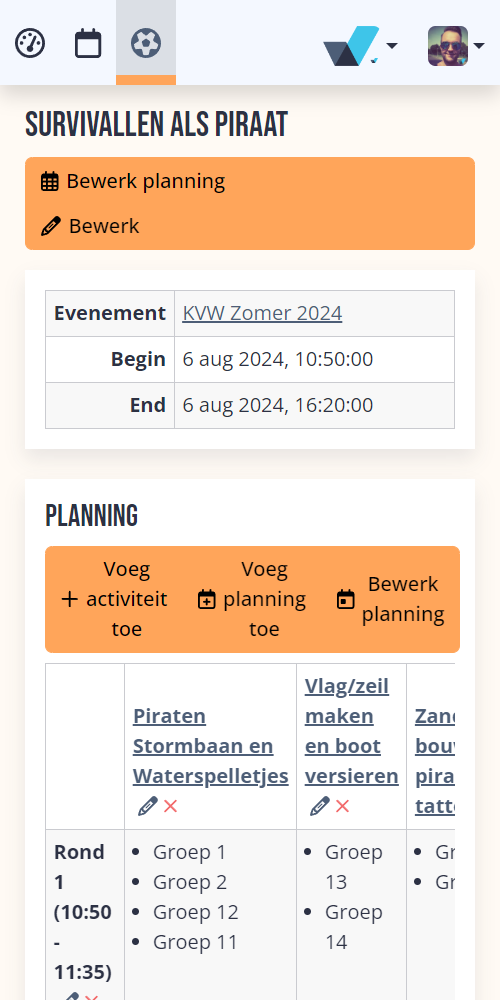 Als bijvoorbeeld leiding de goede rechten heeft, kunnen ze inloggen en zien ze in een oogopslag wat het programma voor hun groepje is en waar ze op welk moment moeten zijn. Geen ouderwets geprint en rondslingerende draaiboeken meer!