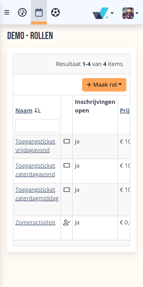 Onder elk evenement kunnen namelijk sub-evenementen en verschillende rollen worden aangemaakt met elk zijn eigen instellingen.